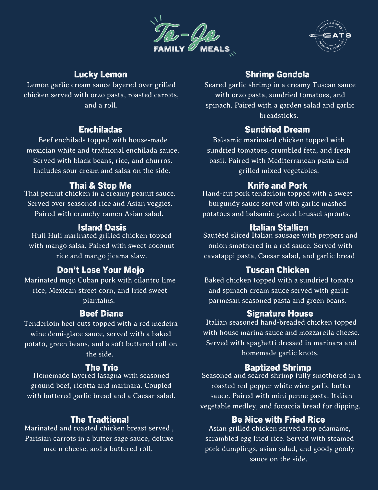 At Indian Rocks Eats, we believe food should be both delicious and meaningful. Whether you’re planning a corporate luncheon, private dinner, or celebration with friends, our catering menus are thoughtfully crafted to bring people together. From casual drop-offs to full-service buffets and elegant chef experiences, we offer flavorful options to fit every event and budget.