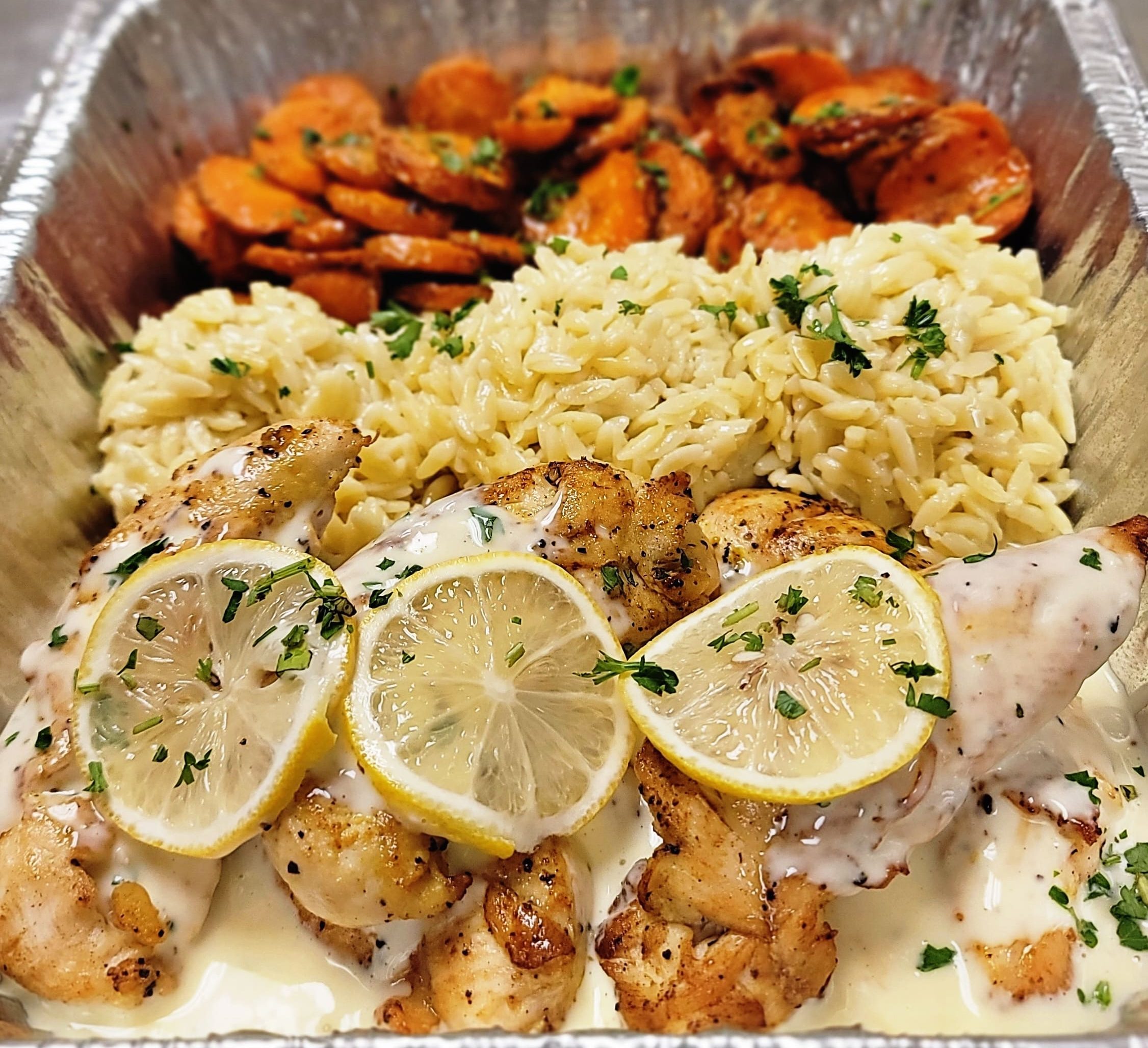 Get the same benefits of FFE in ready-to-heat dinners (or lunches). Meals come in microwave-safe containers and are available for pickup every Monday between 3–6 PM.